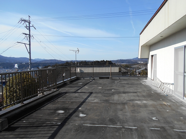 ・建物は鉄骨造一部2階建ての陸屋根で、広いルーフバルコニーからは恵那市中心部の景観が楽しめます。
