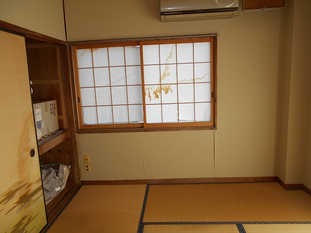 ・内部は、壁に多少のカビ汚れ、クロス、障子の劣化等が目立ちます。また、残置家財の片付けについては所有者が片づけます。