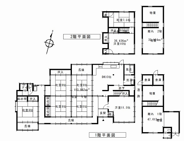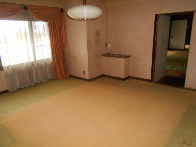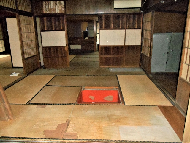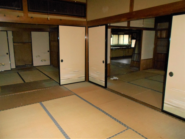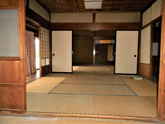 ・建物は8DKで、平屋部分と母屋の屋根の取り合い部分に不安な箇所も見うけられます。内部では天井にシミや剝がれ、床に傷んだ部分があります。母屋のほかに付属家で木造2階建て76.85㎡の倉庫があります。