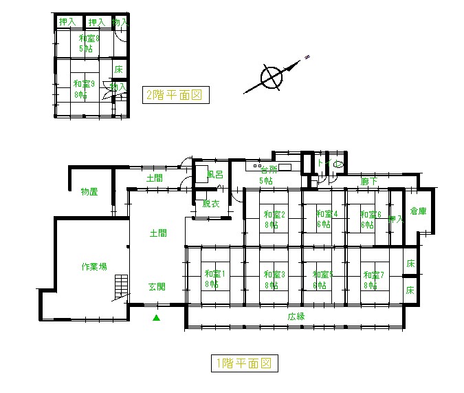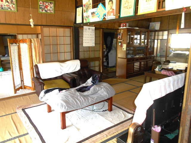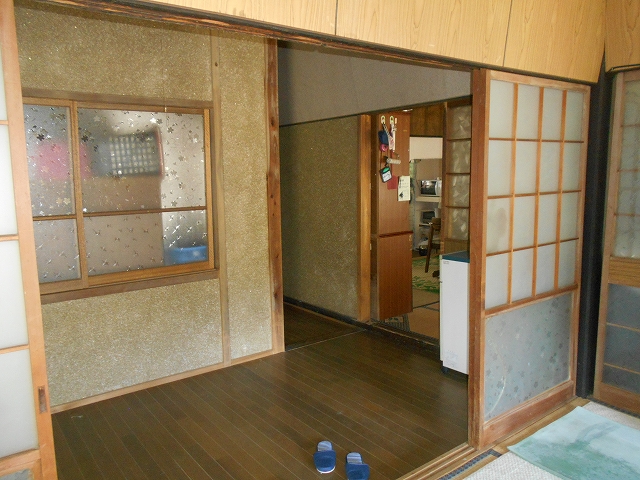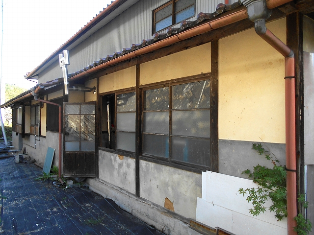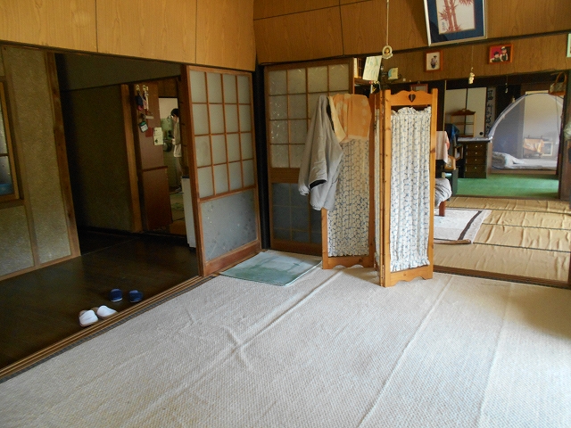 ・建物は大変古く、屋根は瓦葺きに葺き替え済みですが経年劣化による傷みが見られます。室内は、玄関は広い三和土の土間で一部コンクリートで覆ってあります。床は全般に沈みがあり改修は必要な状況です。特に建物が西側に傾いているため建具の建付けが悪いです。