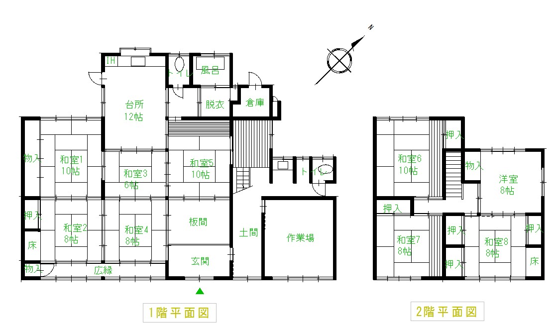 ・建物は数回の増築や改装により外観も内装もきれいな状態が保たれています。特徴は室内トイレと屋外用のトイレが別にあることと、山仕事用の大きな物置や作業もできる倉庫が併設されています。道路に面した半地下式の車庫兼倉庫、敷地の奥に蔵もあります。また、住宅の設備は、オール電化住宅でエコキュート、DKは床暖房に改装済み。裏庭に畑,自宅から250mほどの場所に田(現況畑)も含みます。