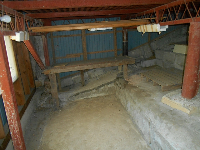 ・状態は母屋の北側の廊下部分で一部に雨漏り跡があります。軒樋や谷樋の劣化や金属板葺き屋根に錆があり、軒の天井には劣化による剥がれがあります。内装は経年劣化で傷みは見られます。設備は建設当時のものなので老朽化による修繕の必要がありそうです。