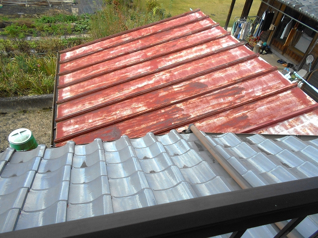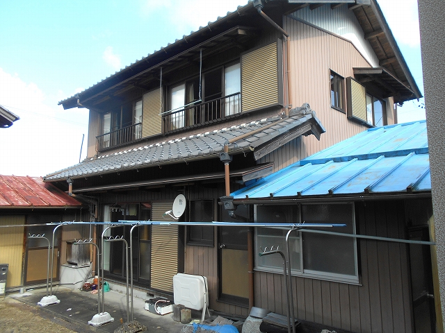 ・建物は大工の元所有者が自宅を建てたもので、風呂と洋室は昭和59年に増築されています。外観で屋根の漆喰のはがれや、金属板の錆があり修理は必須と思われます。