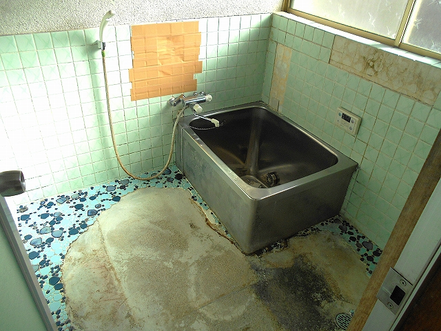 ・建物の状態は、建物の全体的に経年劣化が見られます。外部では雨樋の破損、鉄部の錆など、内部では一部の床がふわふわしたり壁の汚れやタイルのはがれなども見られます。また、住宅設備は古いままの状態です。