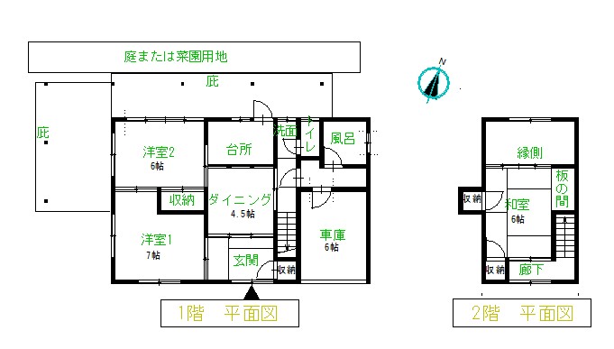 ・車庫は狭いため軽自動車までの駐車ですが、普通車は建物の東側の庇と空地の箇所に駐車できそうです。また、南側の空地では家庭菜園にも利用できそうです。