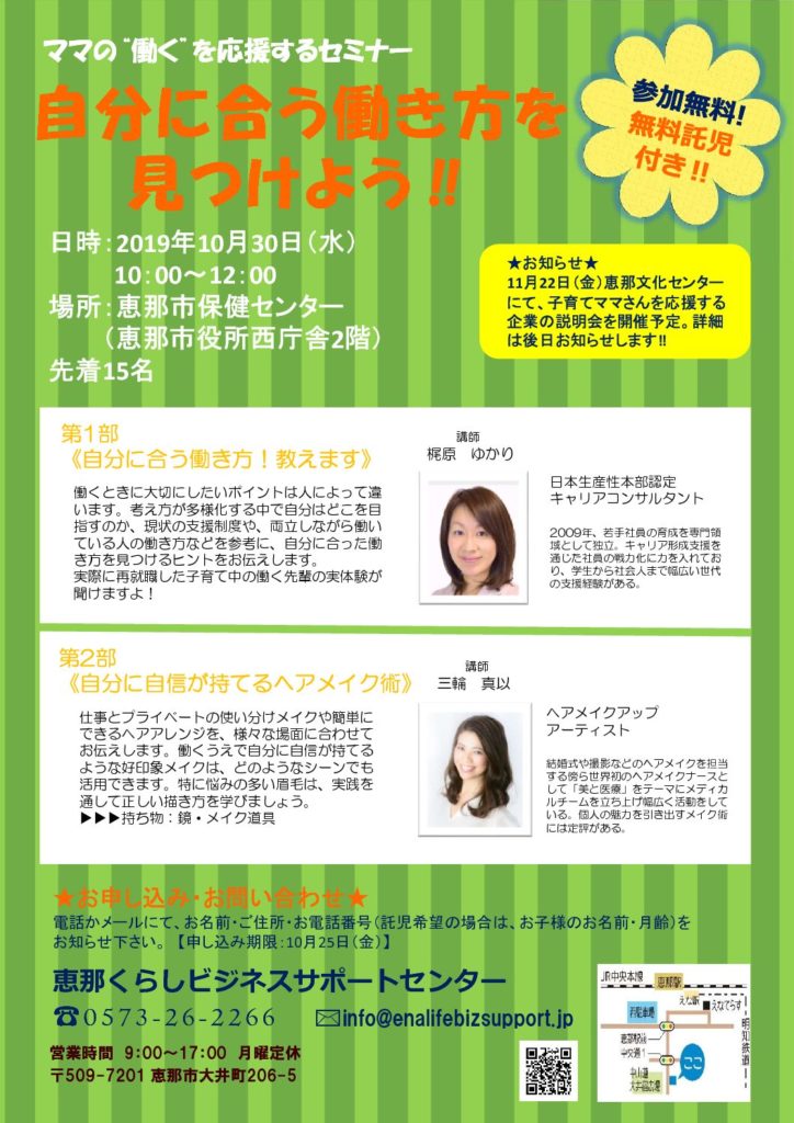 ママの”働く”を応援するセミナー★自分に合う働き方を見つけよう‼