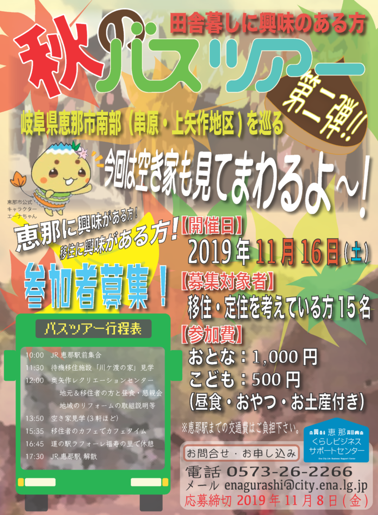 恵那 秋のバスツアー 第二弾!【センター2周年企画】