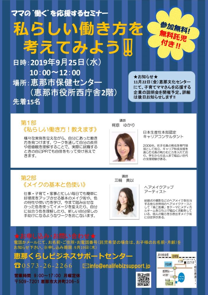ママの”働く”を応援するセミナー「私らしい働き方を考えてみよう!」
