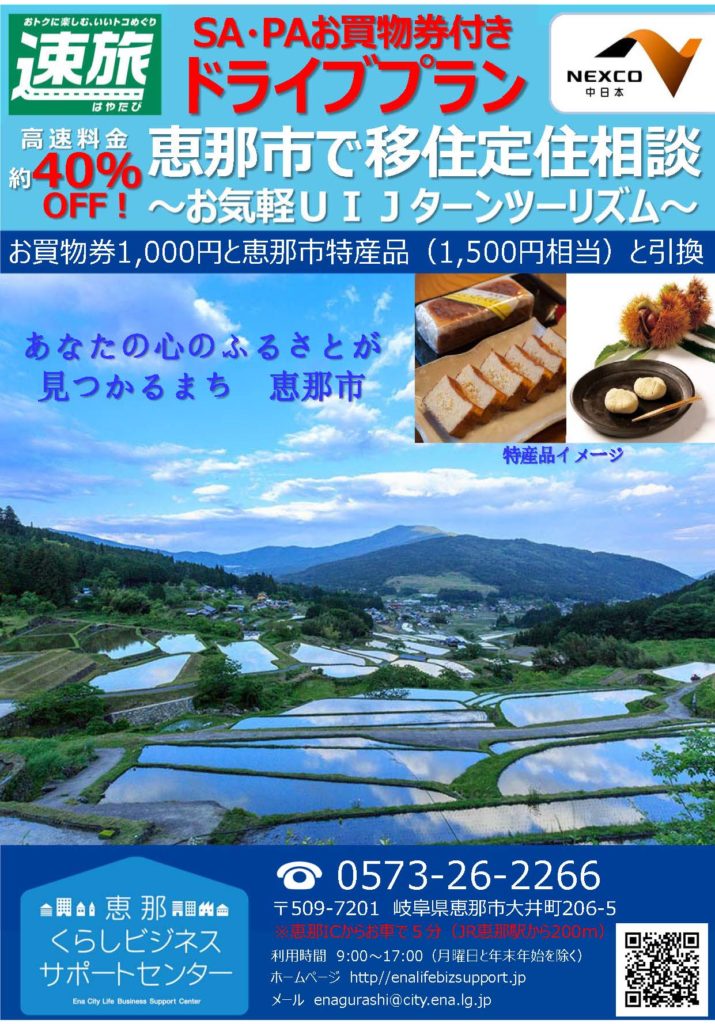速旅SA・PAお買物券付きドライブプランでUIJターン相談