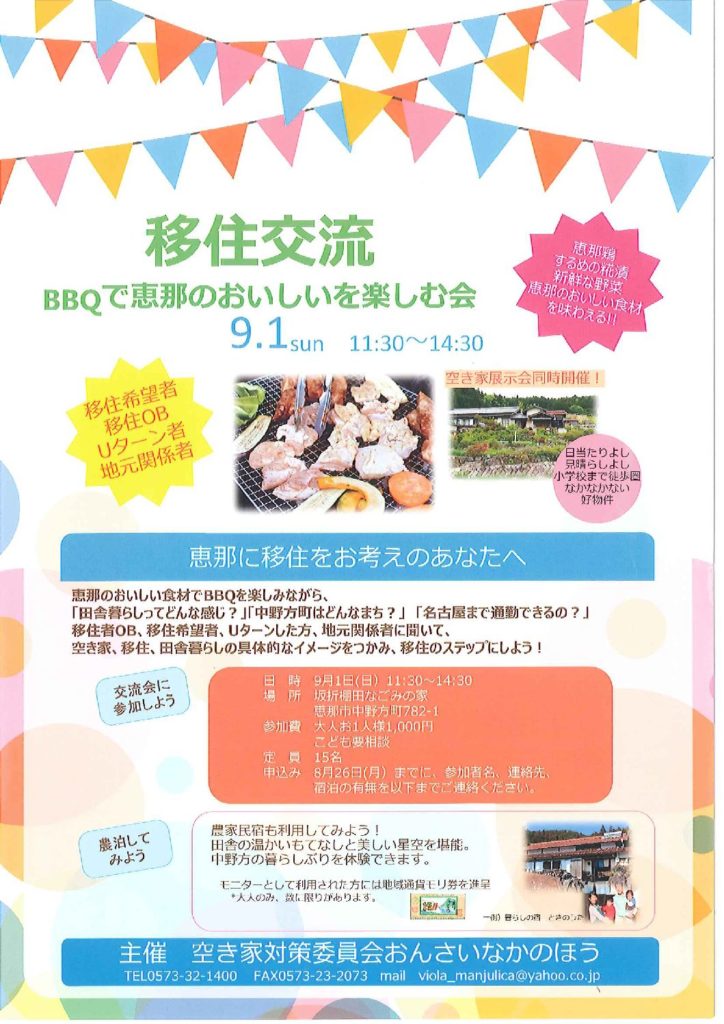 【移住交流】BBQで恵那のおいしいを楽しむ会