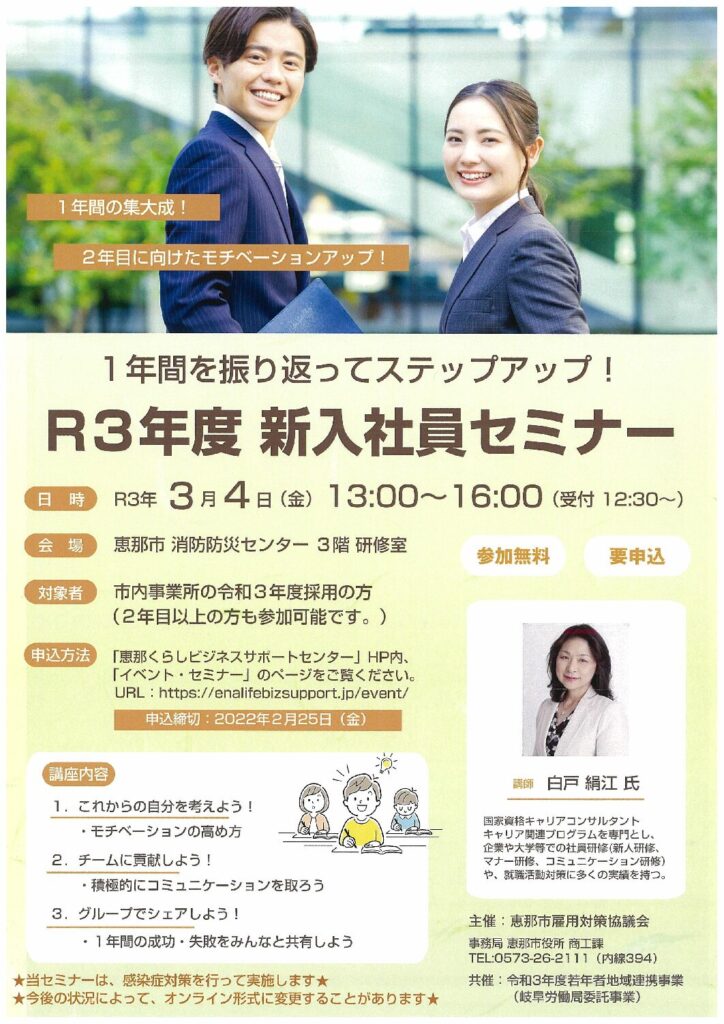 【お申し込みはこちらから】R3年度新入社員セミナー