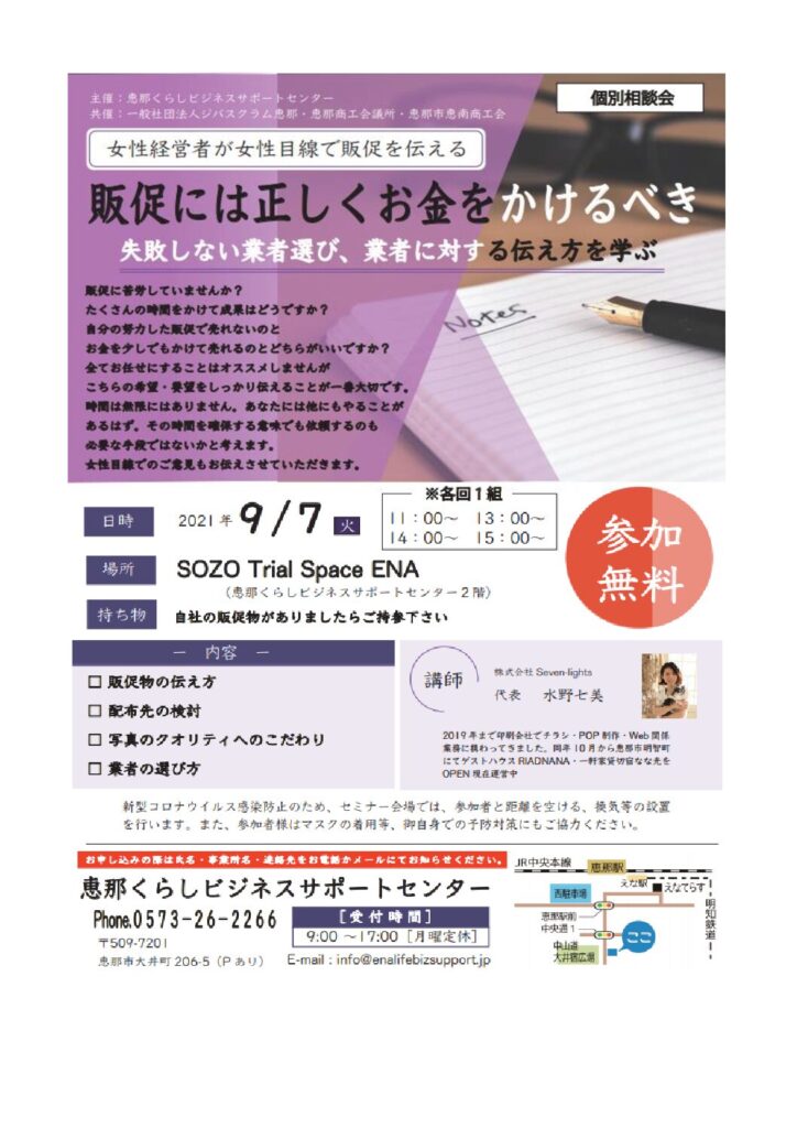 【開催延期】『女性目線で伝える販促~個別相談会~』を開催します!