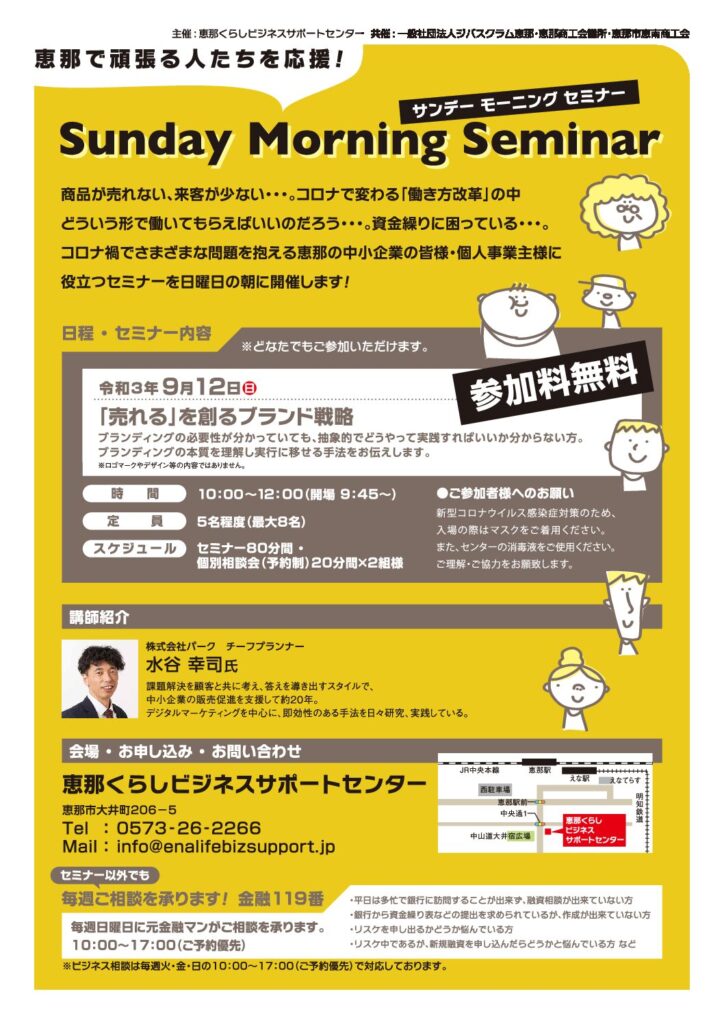 【開催延期】恵那で頑張る人達を応援!『サンデーモーニングセミナー』!
